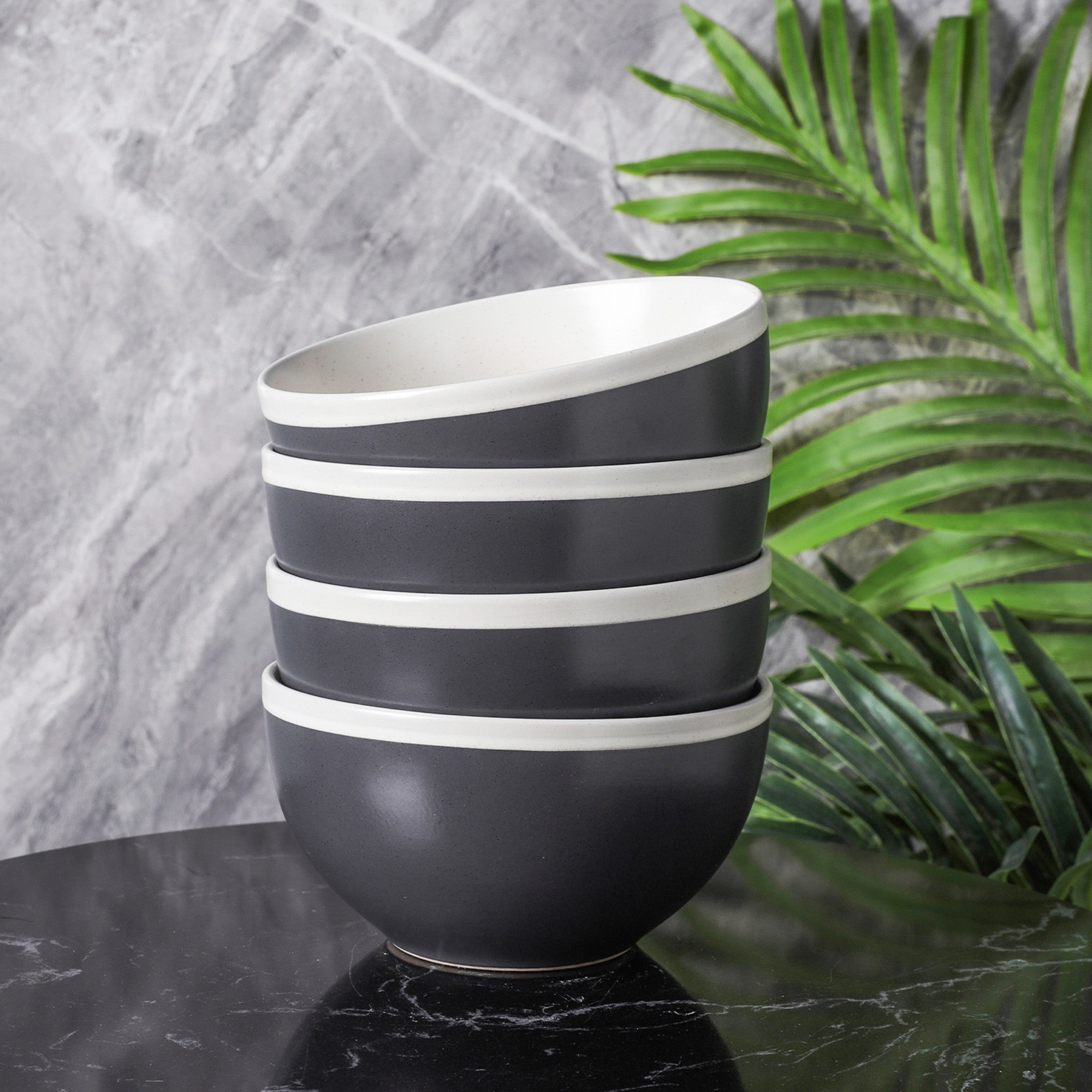 Monxra Stoneware Bowl – Dark Gray And Cream
