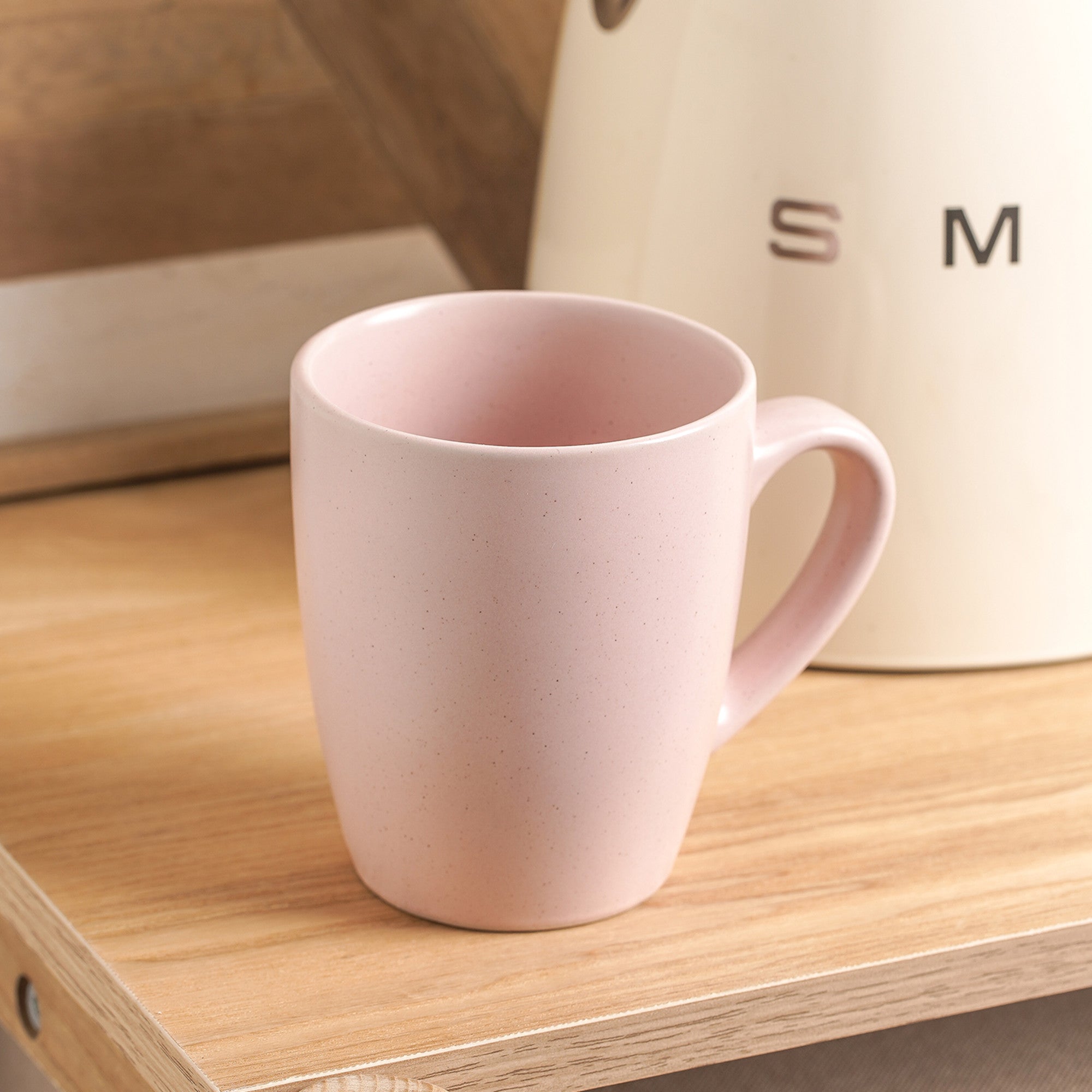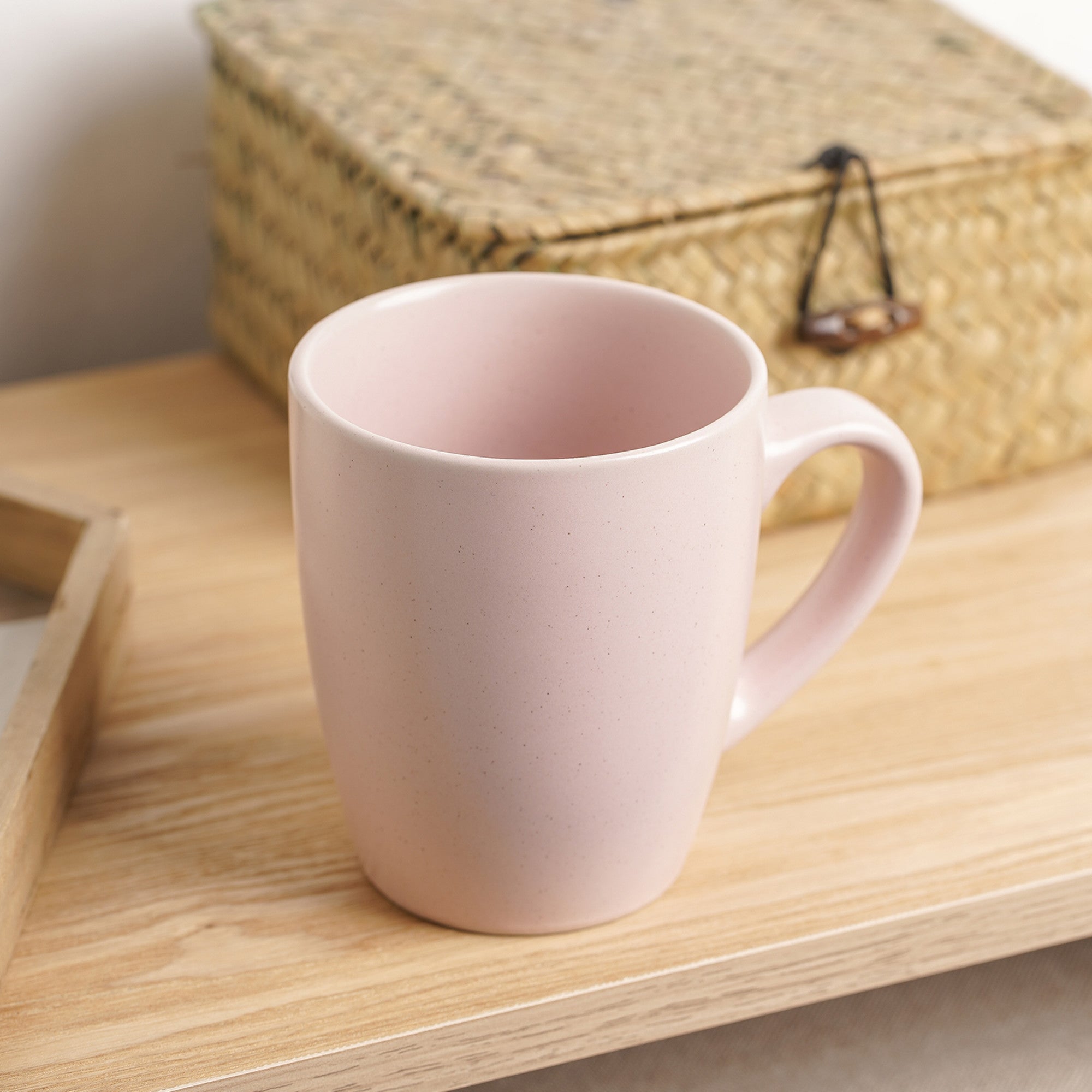 - Design: Soft blush/pink solid color, classic mug silhouette with a slightly tapered body, smooth and clean rim, and a loop – style handle for ergonomic gripping.