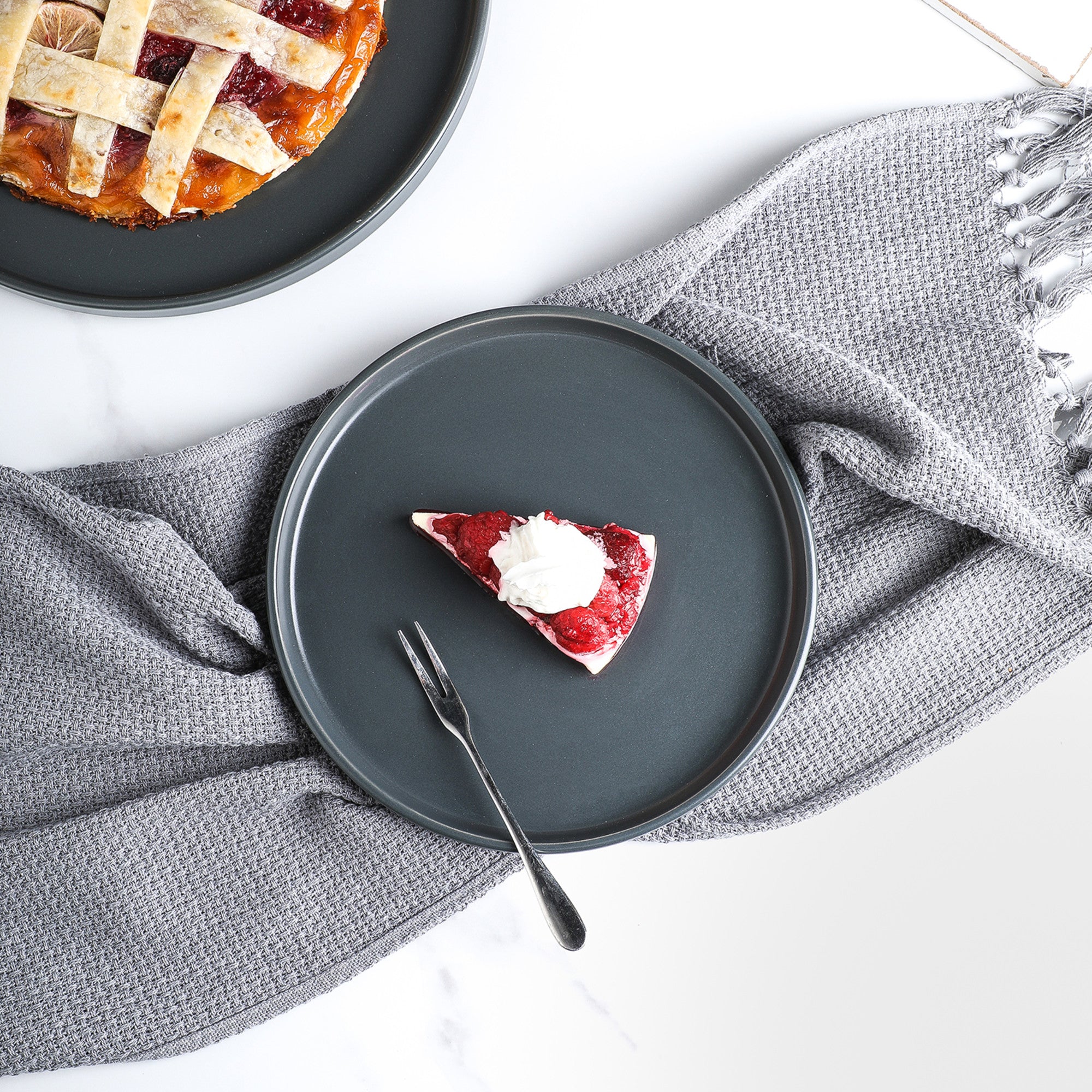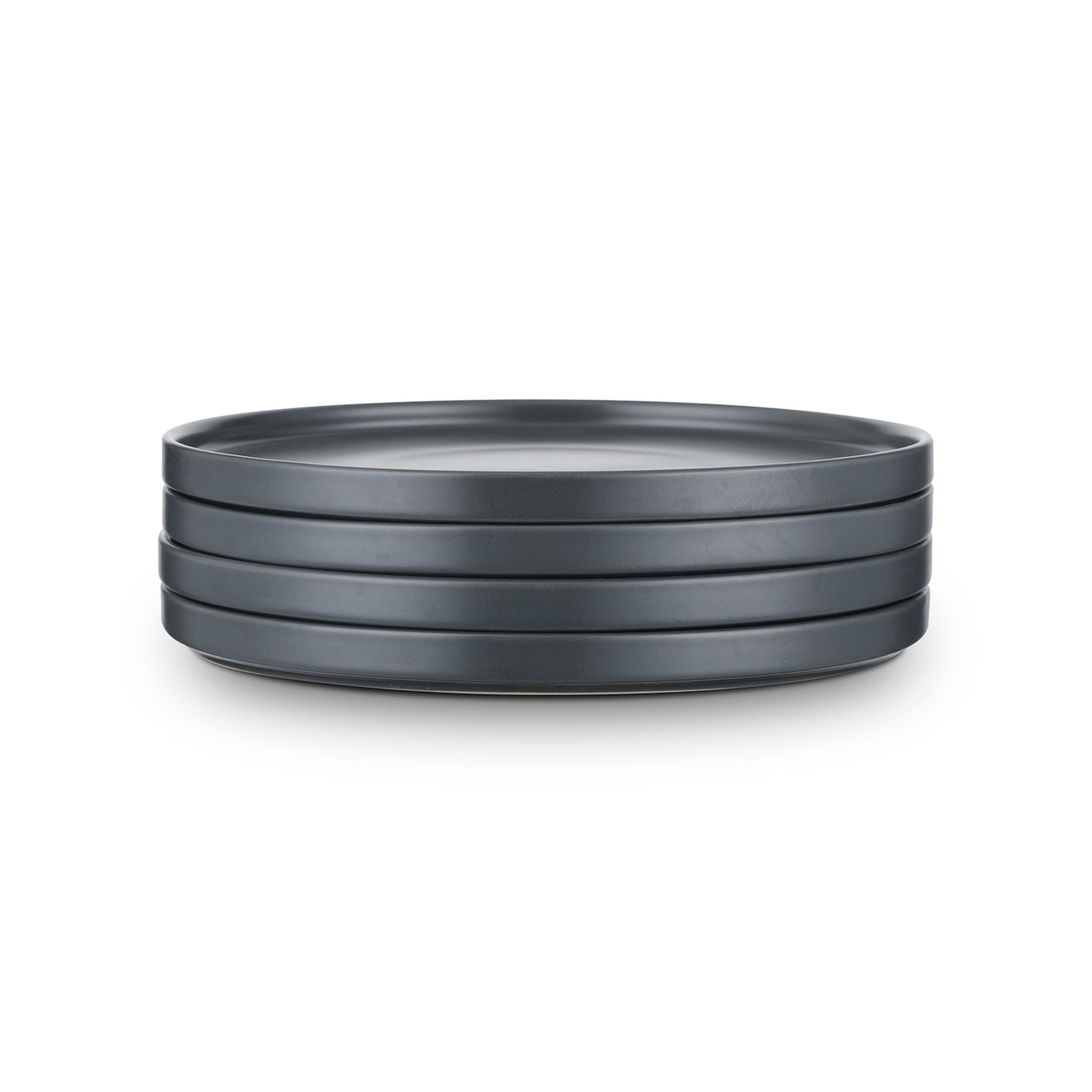 Enhance your dining experience with this stunning 4-piece plate set. Crafted from high-quality ceramic, these plates feature a sleek matte finish in a solid charcoal gray color. The classic round, rimmed shape with a thin, subtle rim adds a touch of modern sophistication to any table setting.