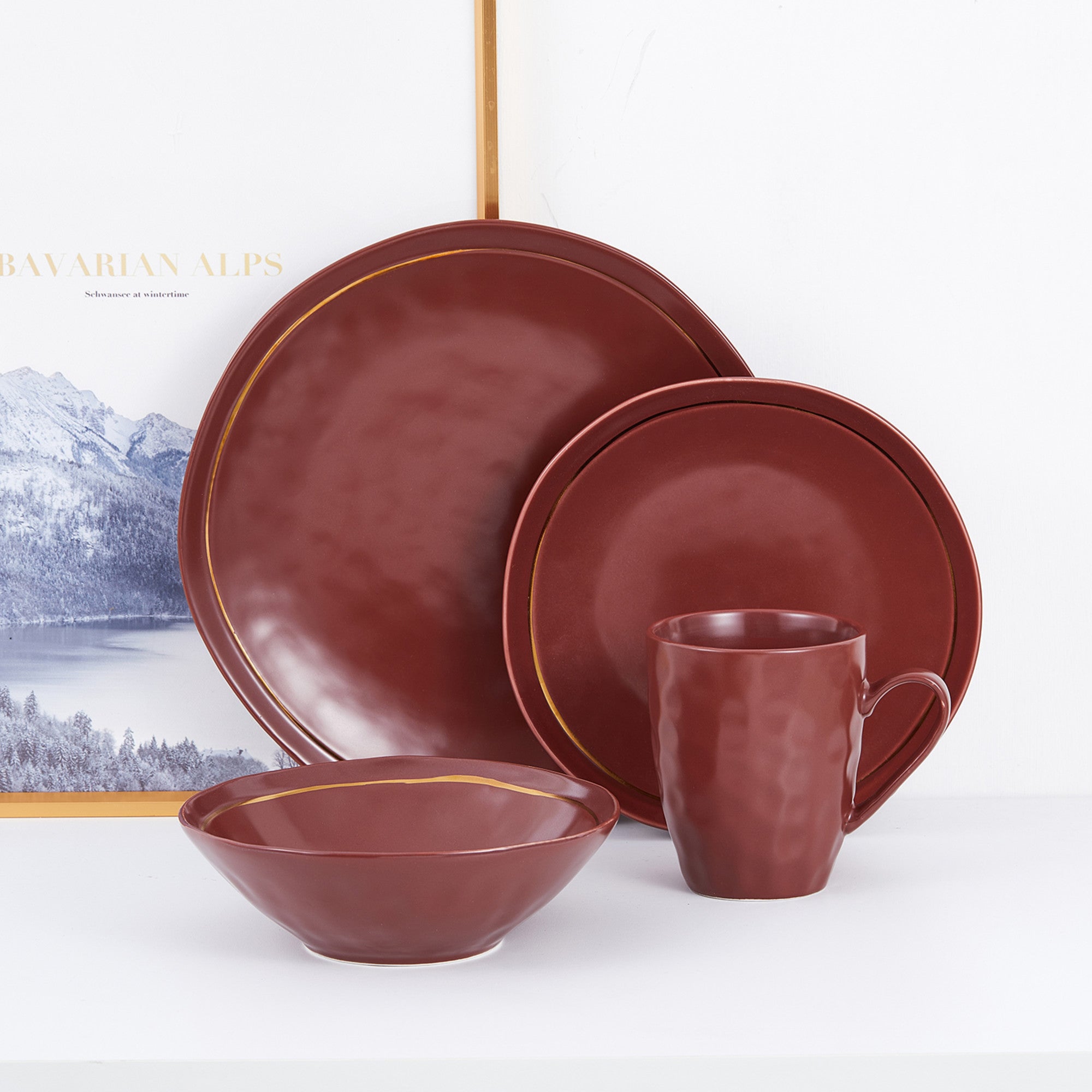- Design: They have a solid burgundy color with a continuous gold decorative band along the rim, offering a modern and sophisticated look.