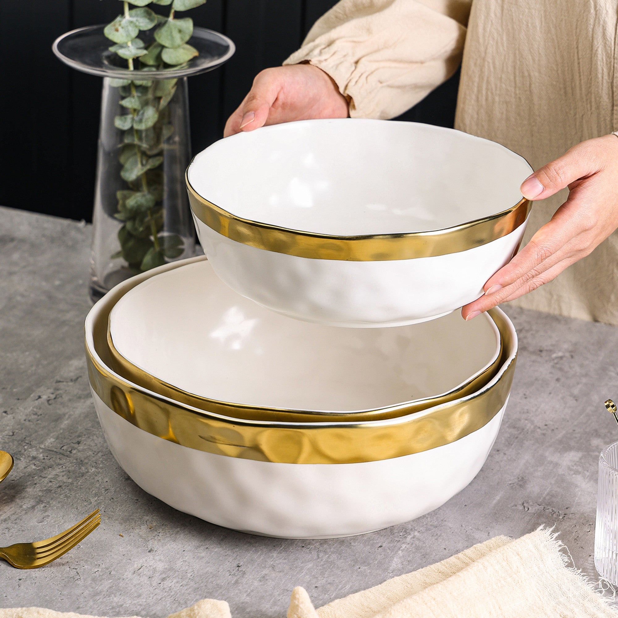 Monxra Porcelain Service Bowl Set – White