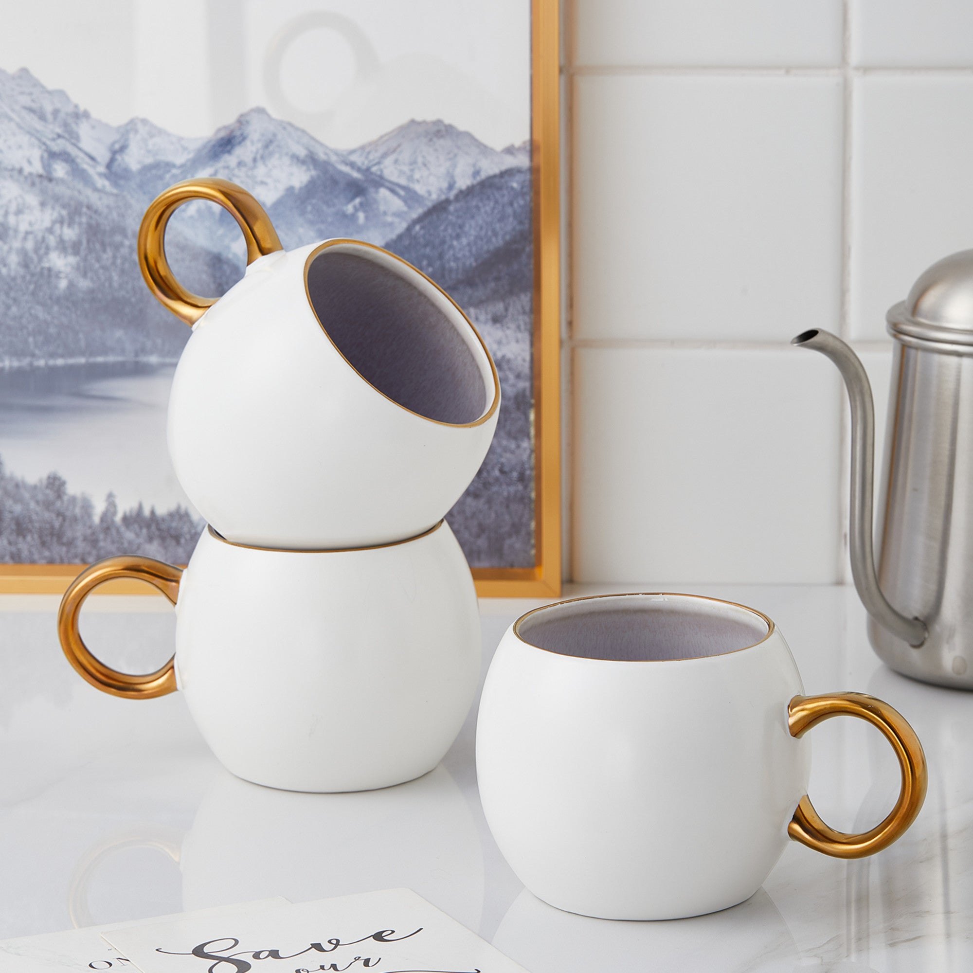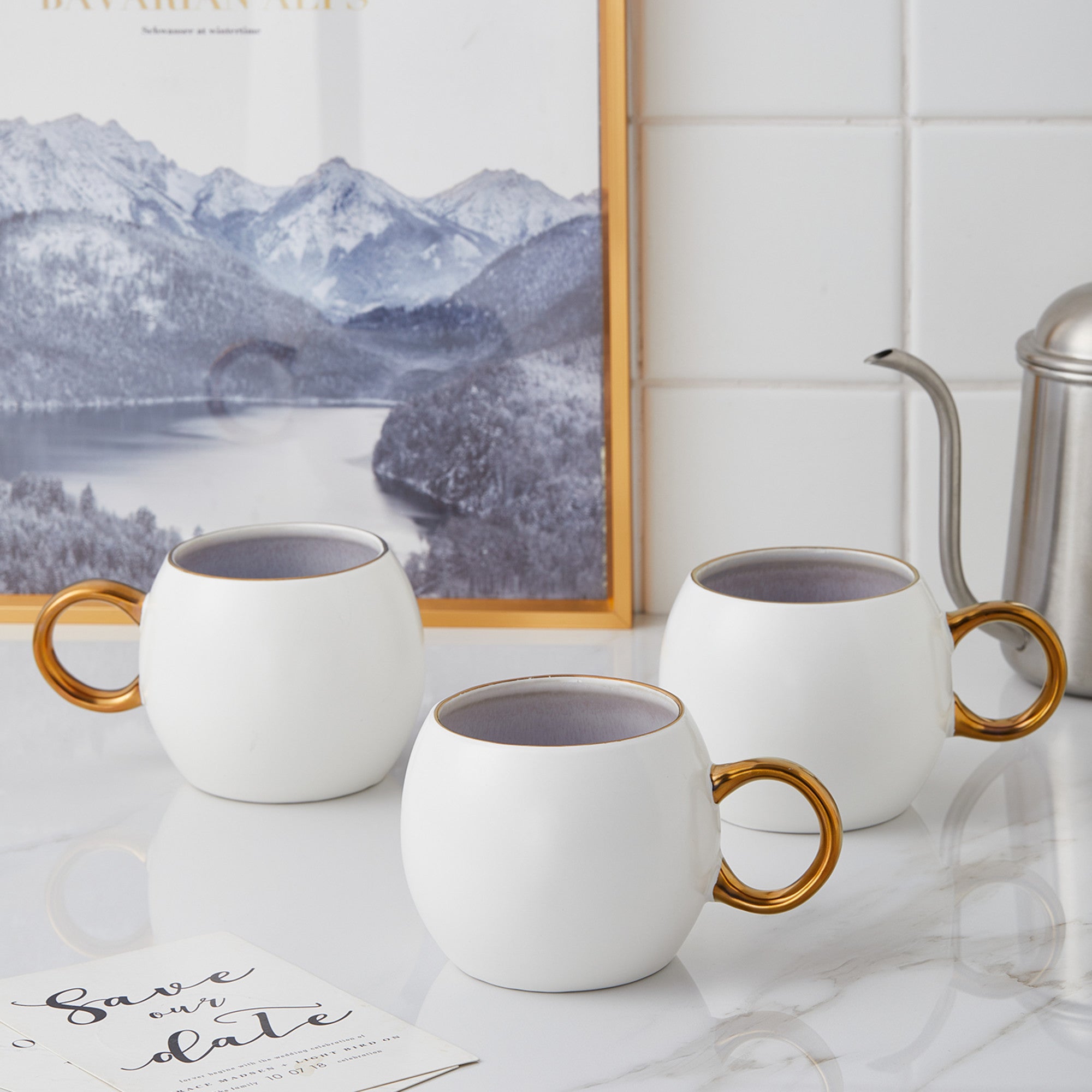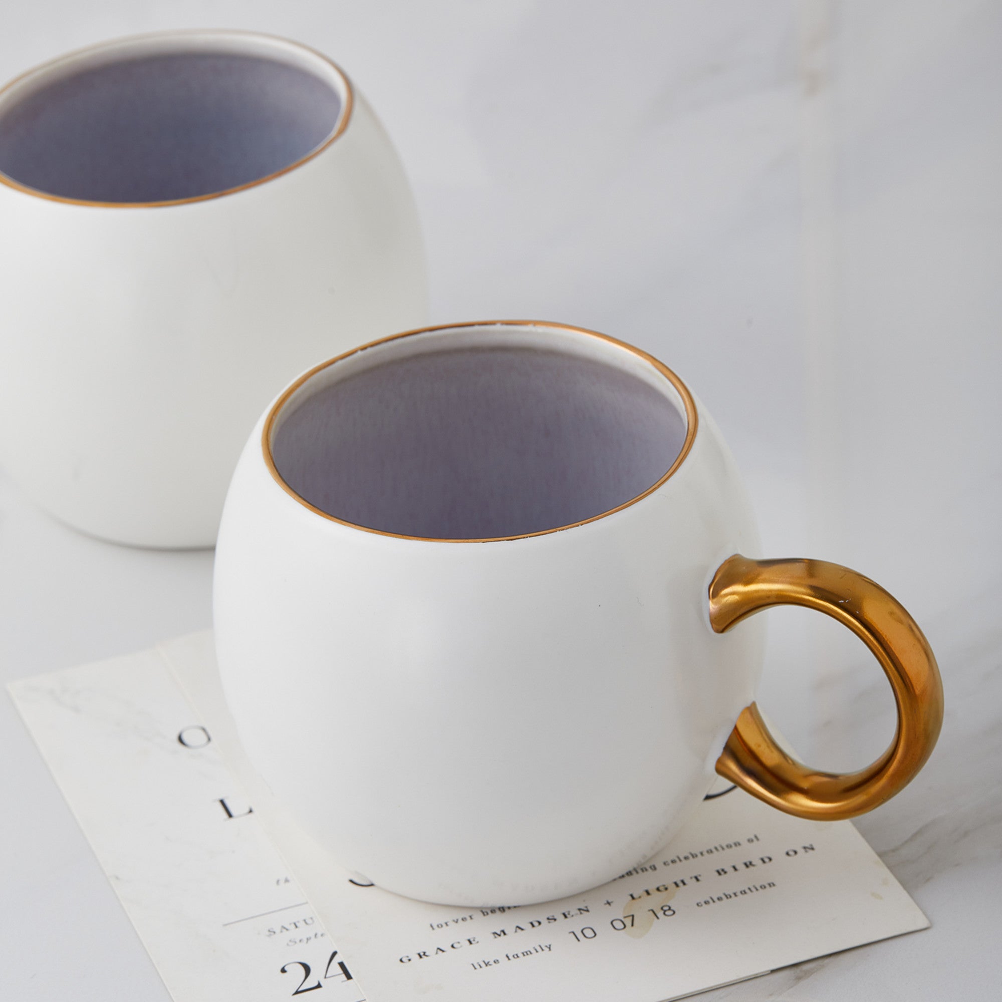 Introducing a contemporary single ceramic mug that combines elegance with modern design. The mug features a bulbous shape, a matte white exterior, and luxurious gold accents on the handle and inner rim. Its unique silhouette and high – quality finish make it a standout piece for any table setting.