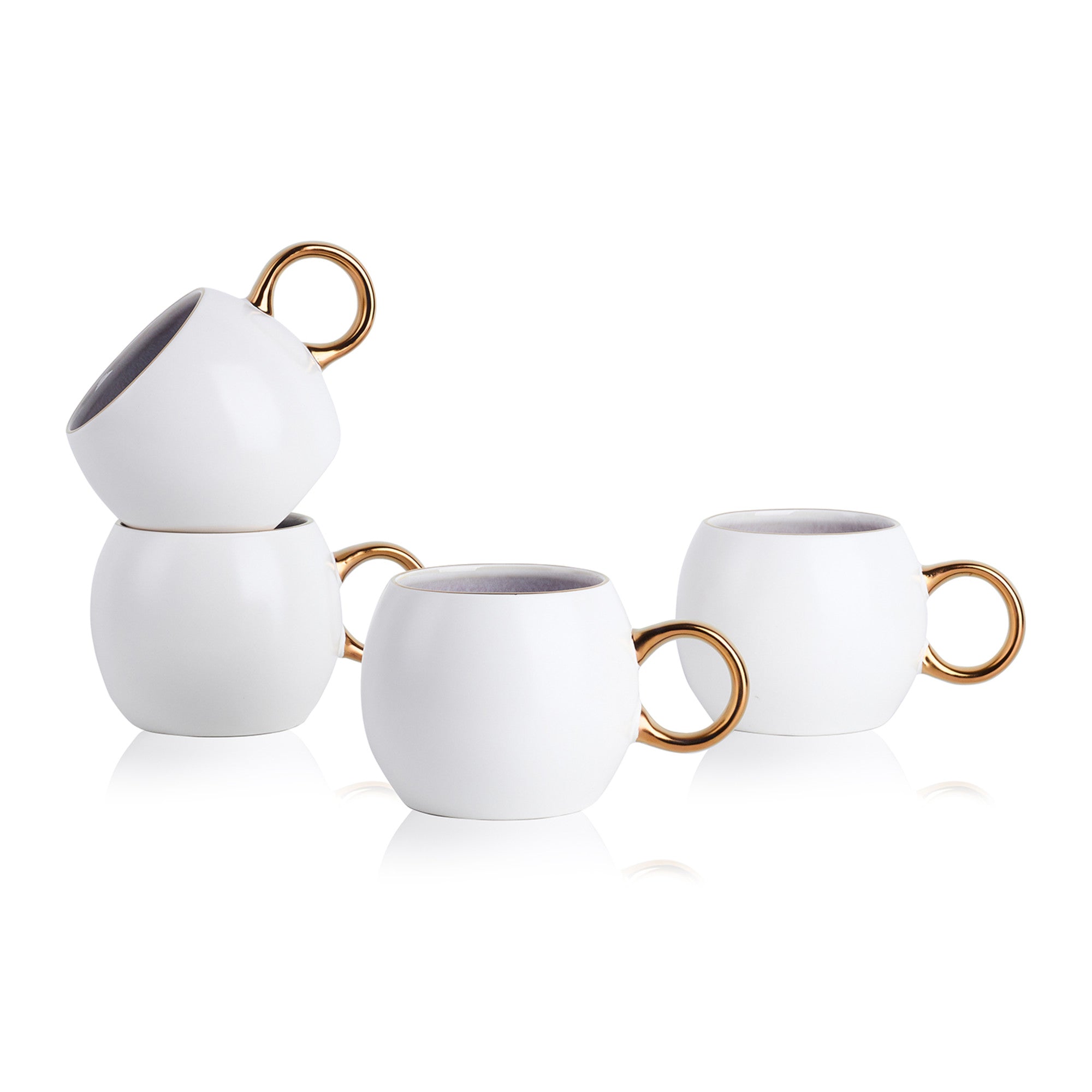 - Material: Made from high – quality ceramic with a matte exterior finish and a likely glossy glaze interior. The handle has a gold – toned metallic glaze or is gold – plated ceramic.