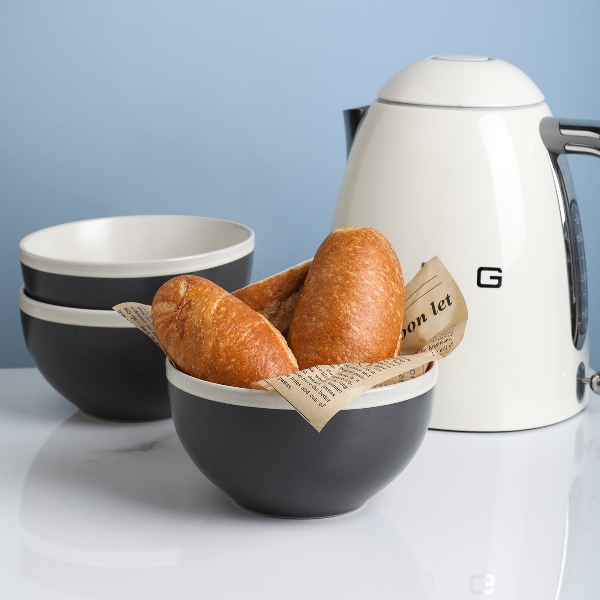 Choose this bowl set for its modern design, functional nesting feature, and high-quality stoneware construction. The two-tone color scheme and white rim add a touch of sophistication, while the stackable bowls save space in your kitchen cabinets. Ideal for everyday use, these bowls are durable, easy to clean, and suitable for a variety of dining occasions.