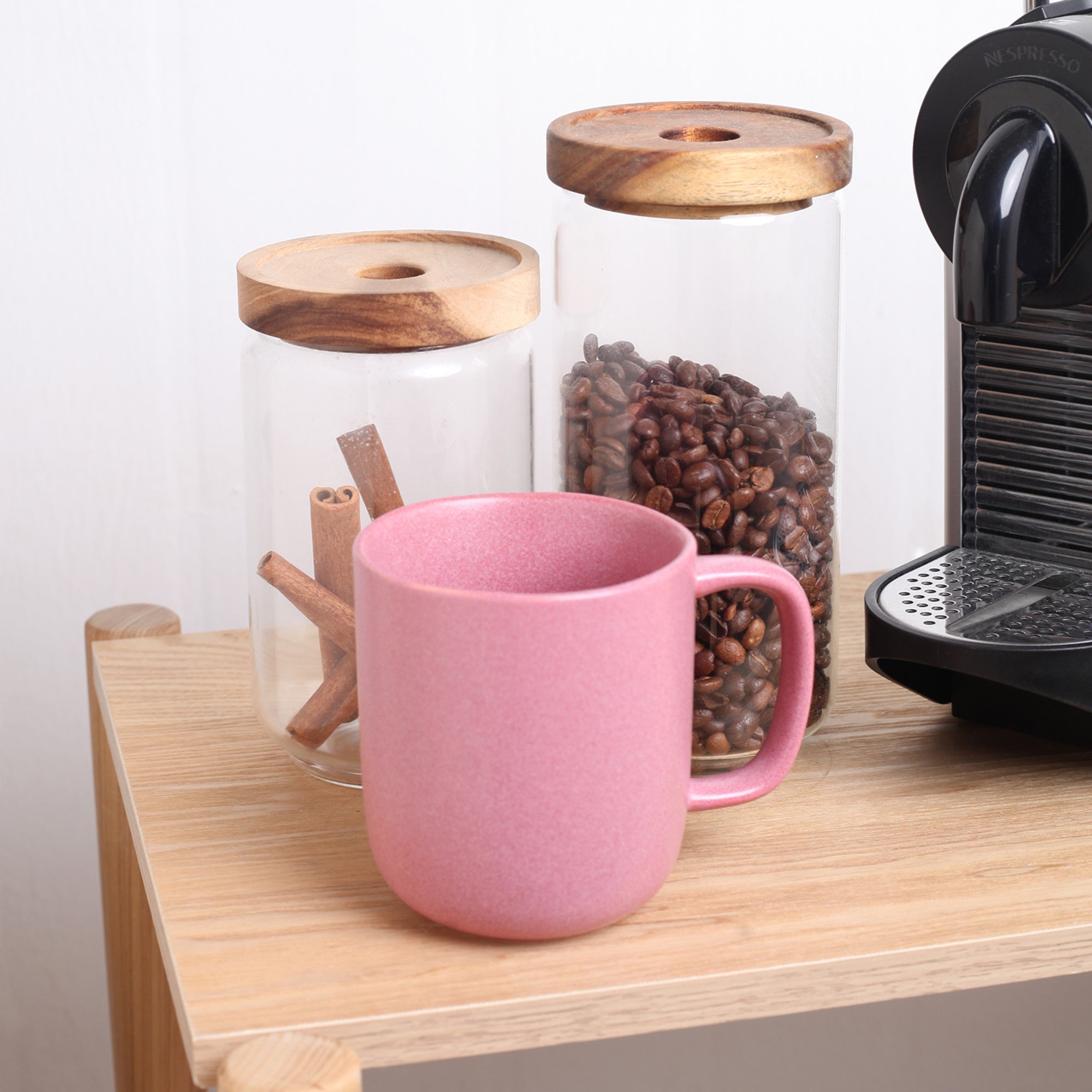 Introducing a single, high – quality ceramic mug that stands out with its solid medium – light pink color and matte finish. The mug features a classic shape with a wide, rounded body, a simple single – handle, and a wide unrimmed opening, offering a modern and minimalist aesthetic.