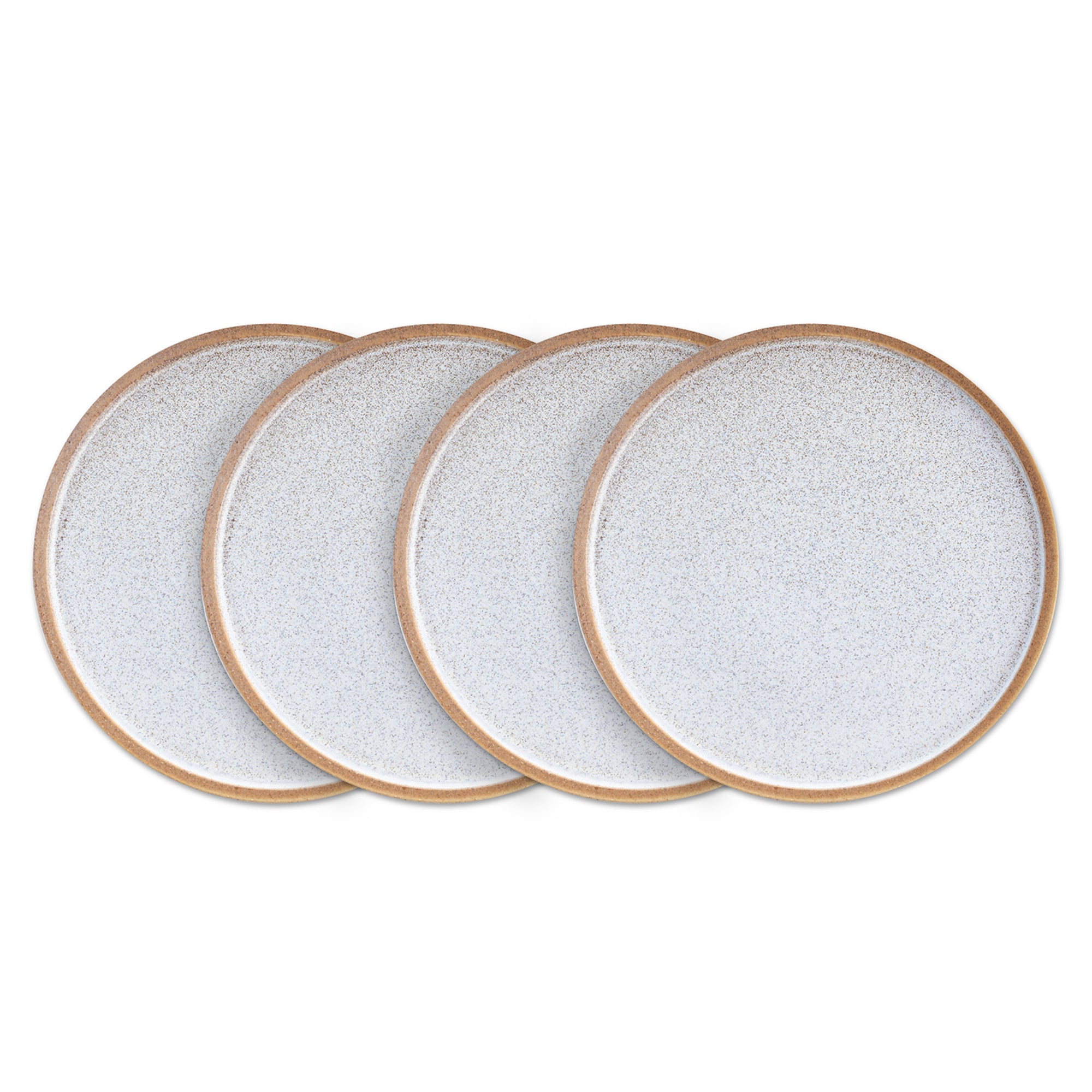 Discover this stunning plate set crafted from high-quality stoneware. The set features white plates adorned with brown speckles and a solid brown rim, creating a modern rustic aesthetic. With both dinner and salad plate sizes, it offers versatility for various dining needs.